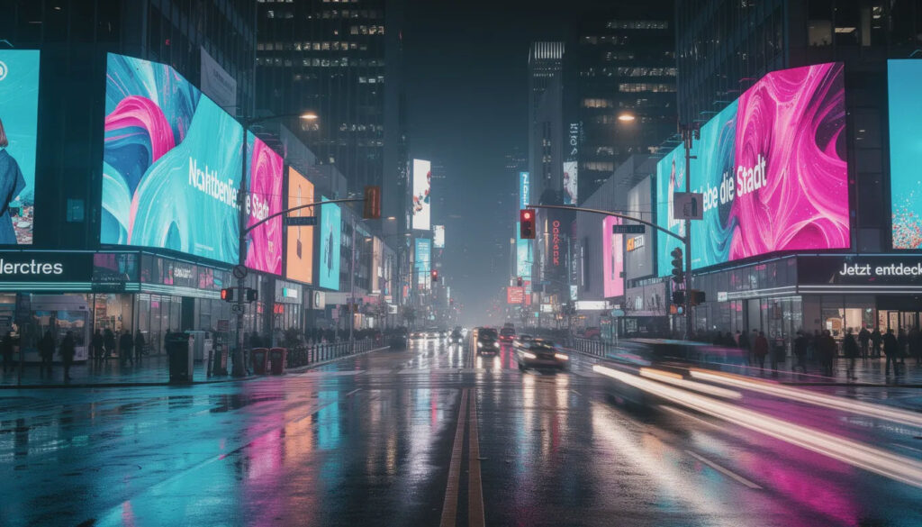 Digital Out-of-Home (DOOH) repräsentiert die Zukunft der Außenwerbung und bietet völlig neue Möglichkeiten der Kundenansprache. LED-Screens und Digital Billboards ermöglichen bewegte Inhalte, die deutlich mehr Aufmerksamkeit generieren als statische Plakate. Die Möglichkeit, Botschaften in bestimmten Intervallen zu wechseln, hält Passanten länger bei der Stange und erhöht die Wahrscheinlichkeit der Botschaftsaufnahme.